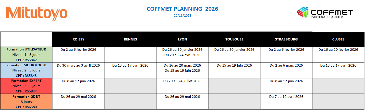 Mitutoyo en sa qualité de membre co-fondateur de COFFMET (Comité Français pour la Formation à la Mesure Tridimensionnelle) propose des formations labellisées COFFMET sur la technologie de mesure tridimensionnelle.